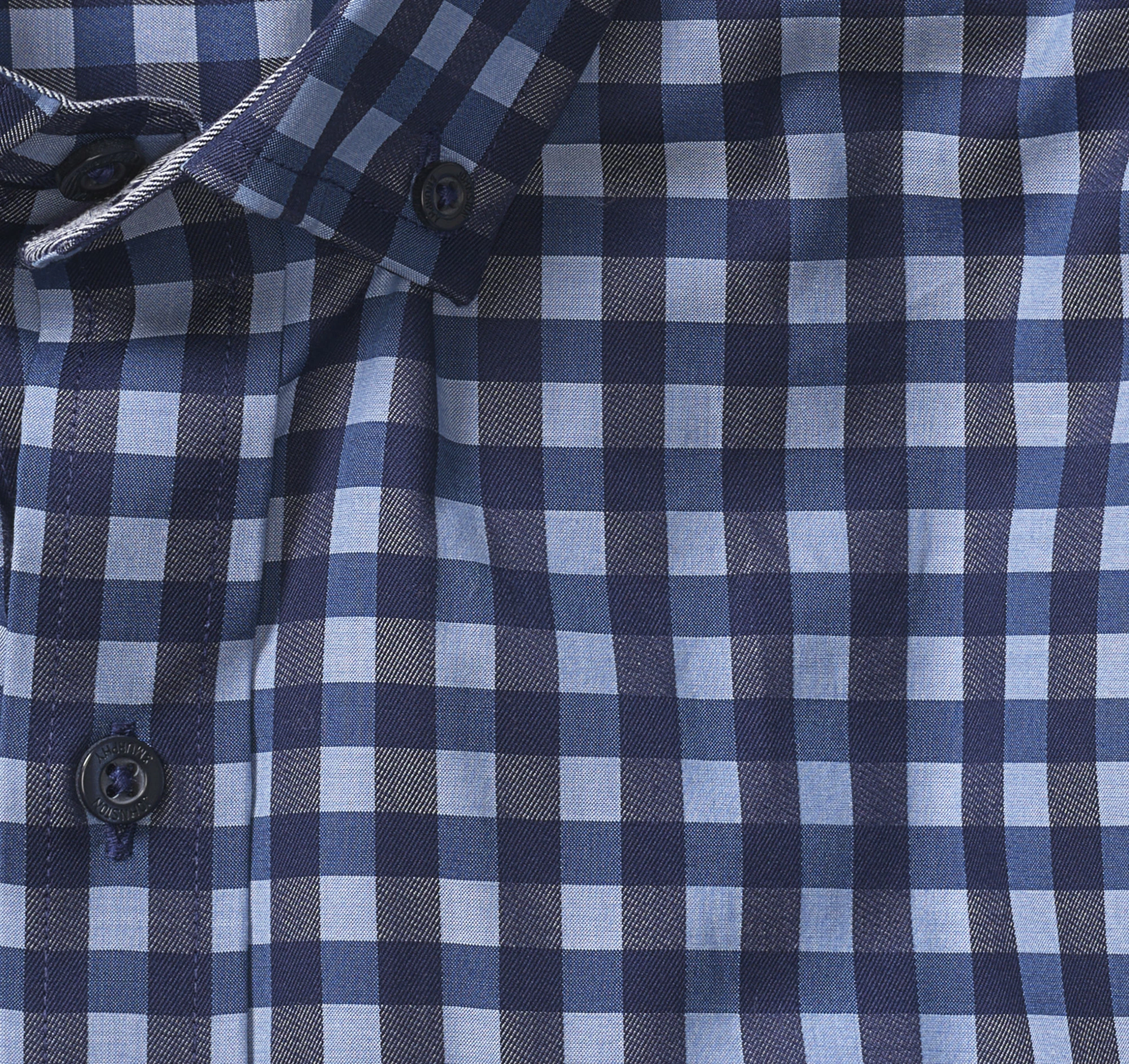 - Chambray facing inside collar and cuffs.