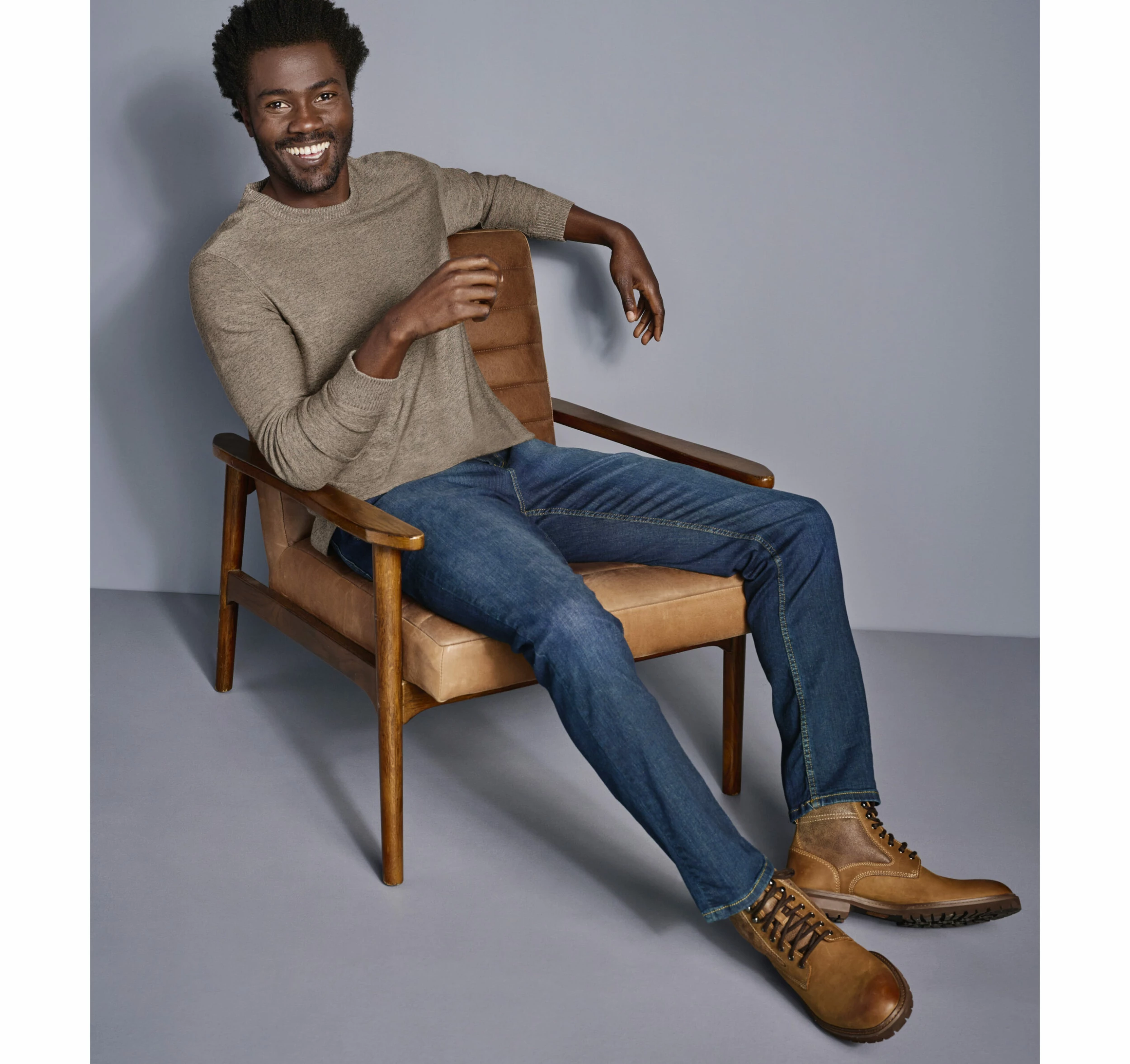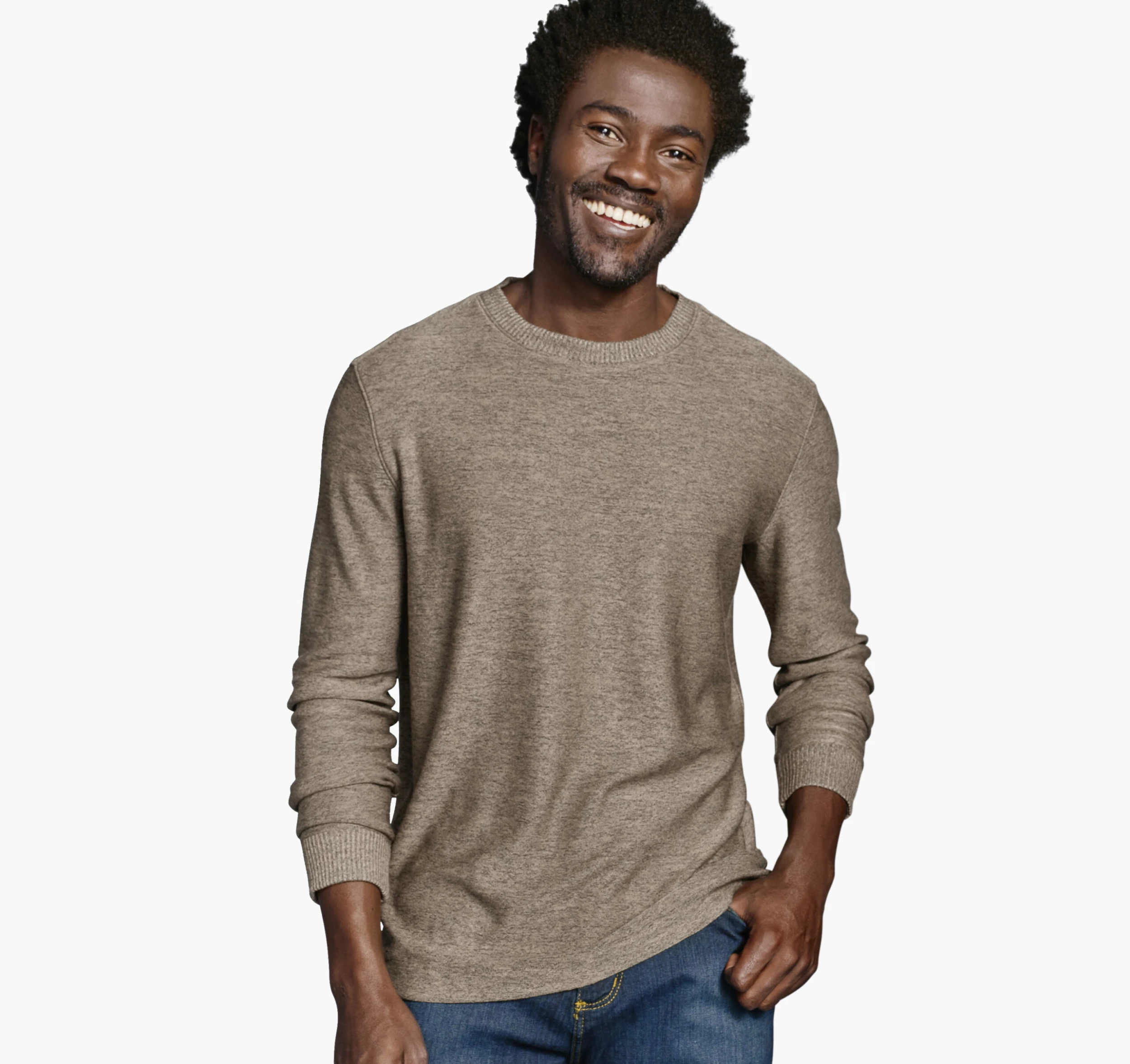 - Rib-knit crewneck and cuffs.