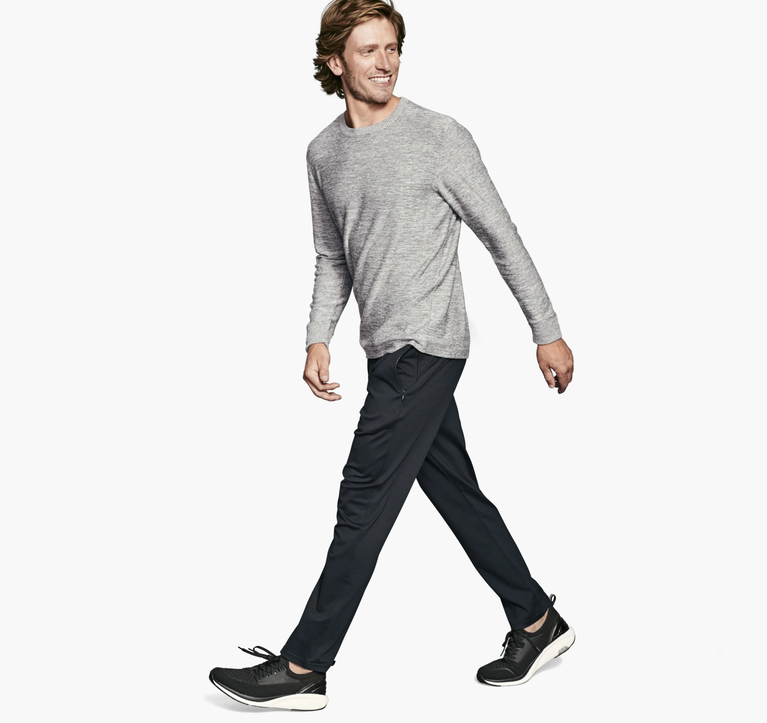 - Rib-knit crewneck and cuffs.