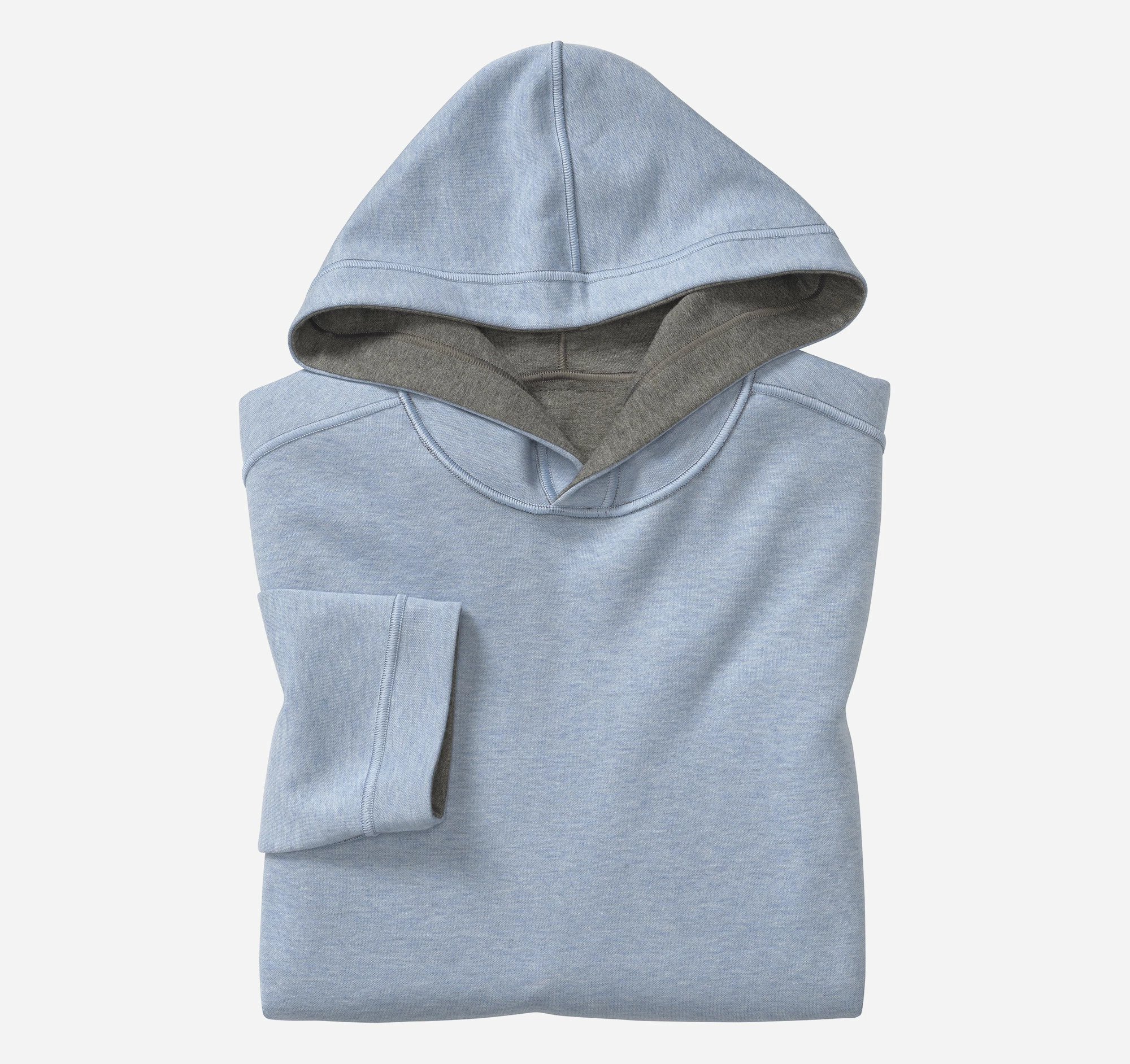- Soft, lightweight double-faced knit reverses to contrast heathered shade.