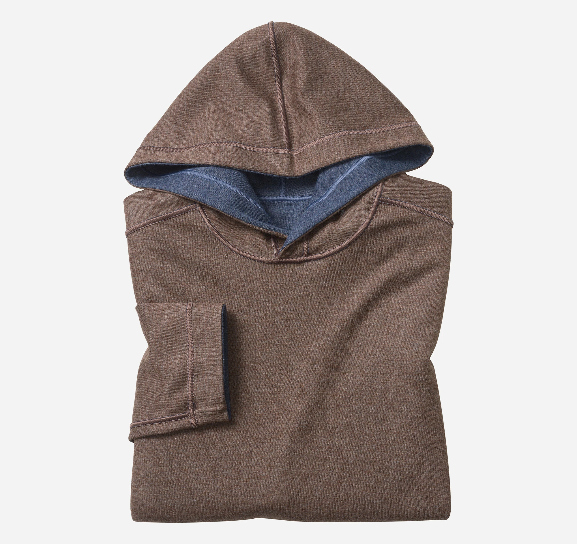 - Soft, lightweight double-faced knit reverses to contrast heathered shade.