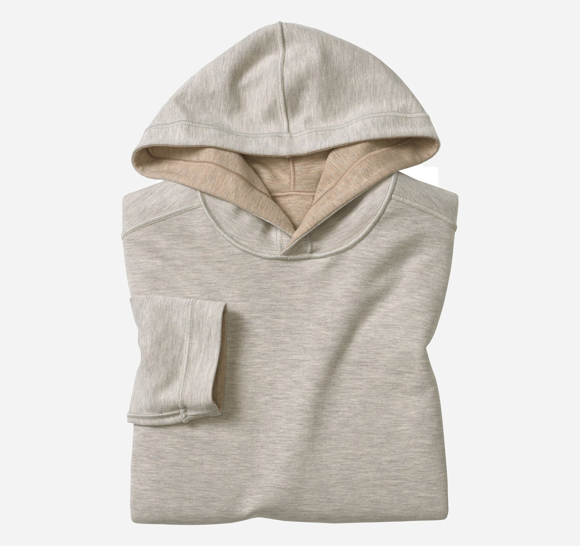 - Soft, lightweight double-faced knit reverses to contrast heathered shade.