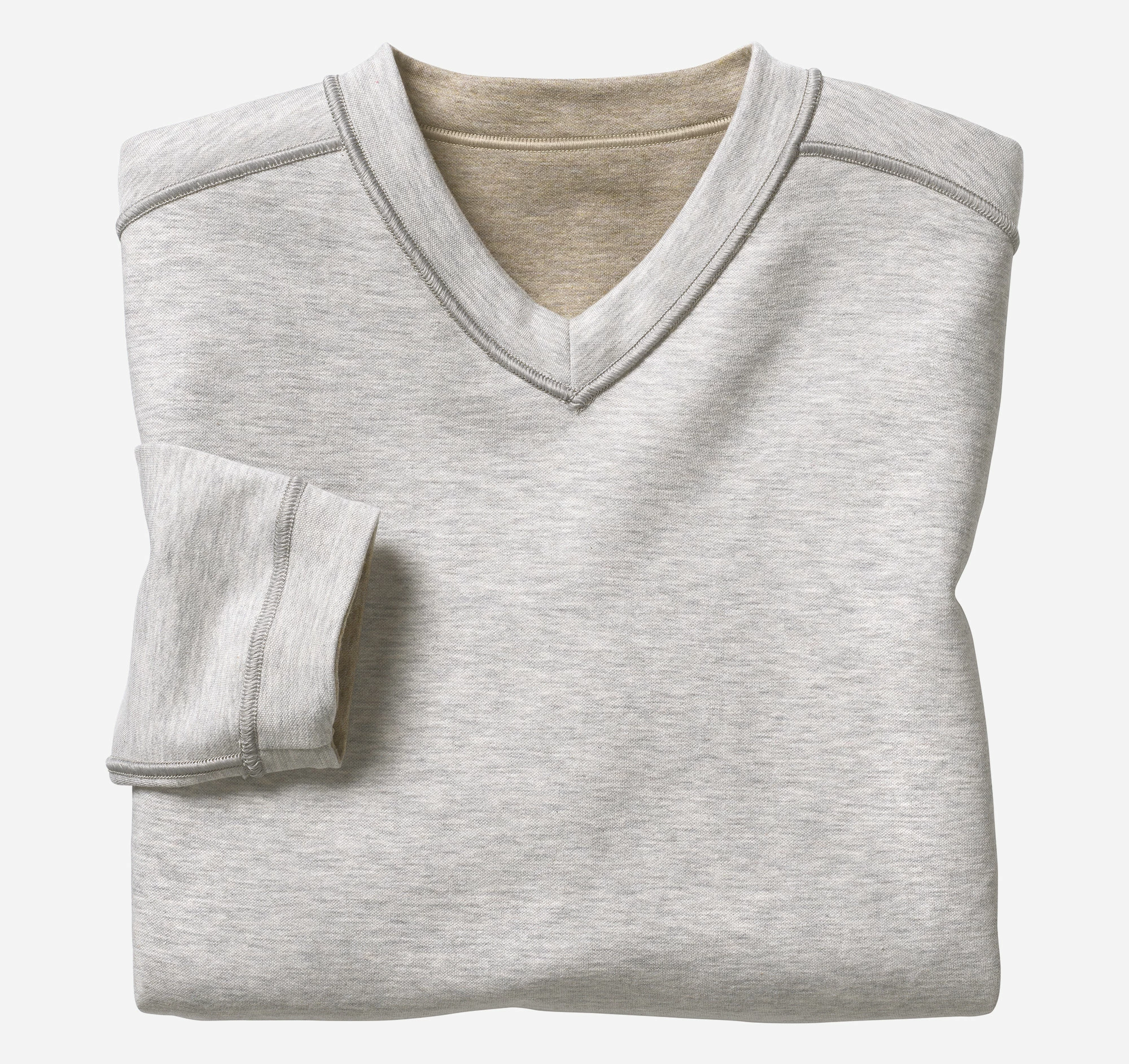 - Soft, lightweight double-faced knit reverses to contrast heathered shade.