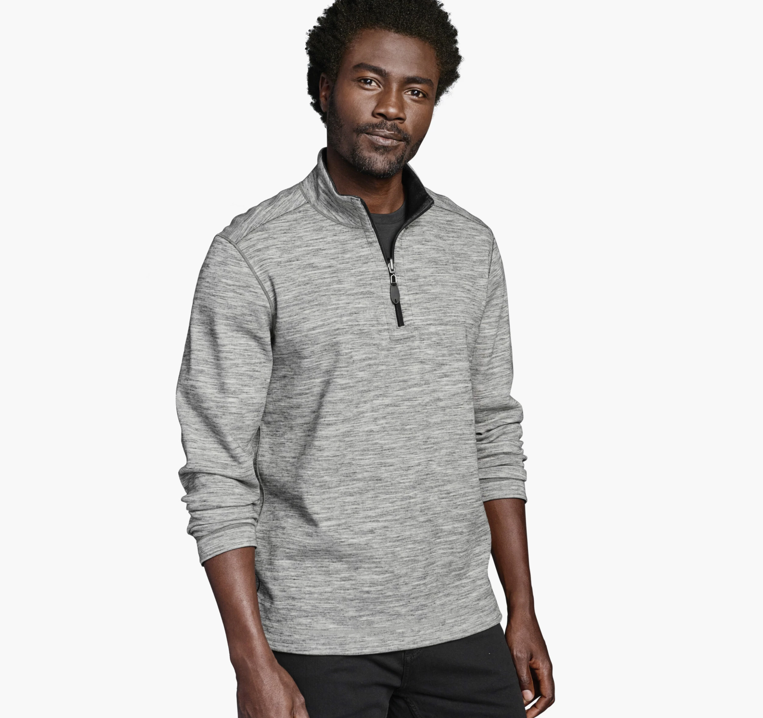 - Soft cotton-blend knit reverses from a rich space-dyed pattern to a heathered knit.
