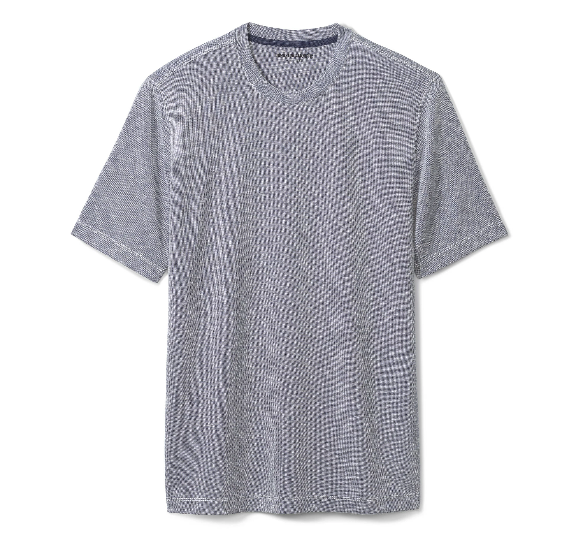 - Garment-washed, slub-textured knit with a soft drape.