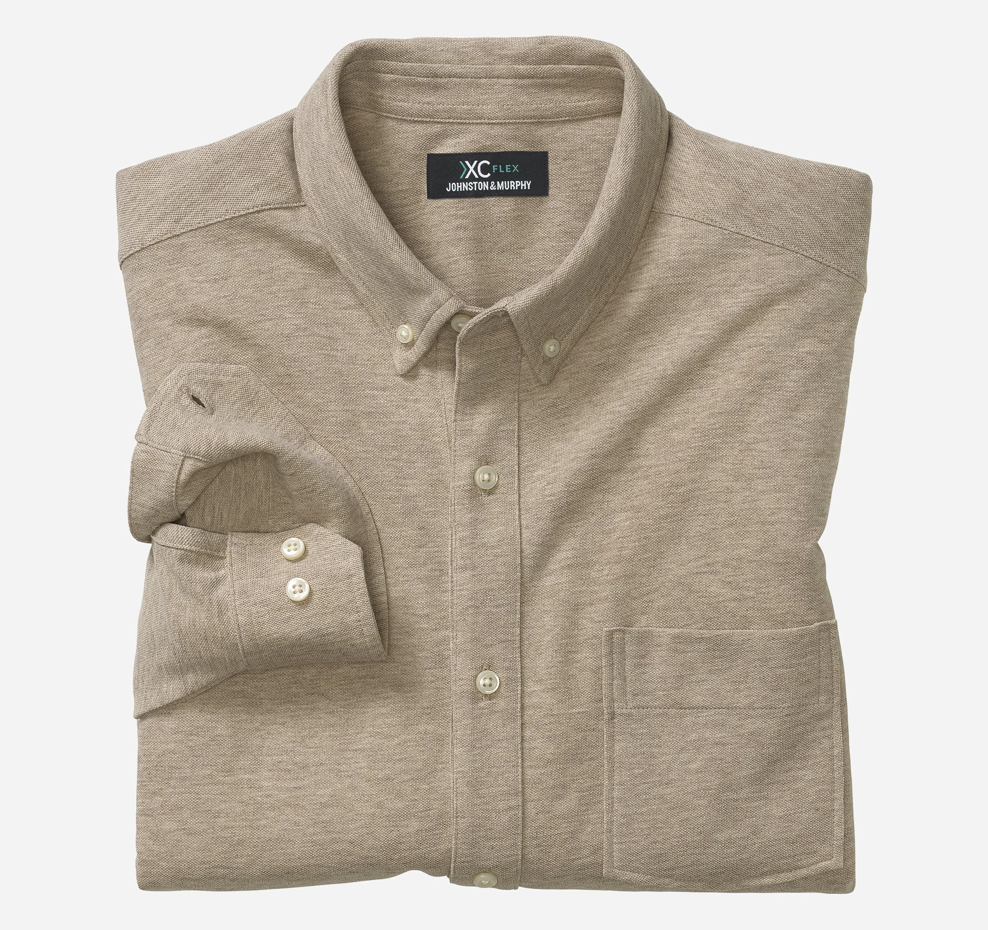 - Dress-shirt styling in T-shirt-soft pure cotton birdseye knit.