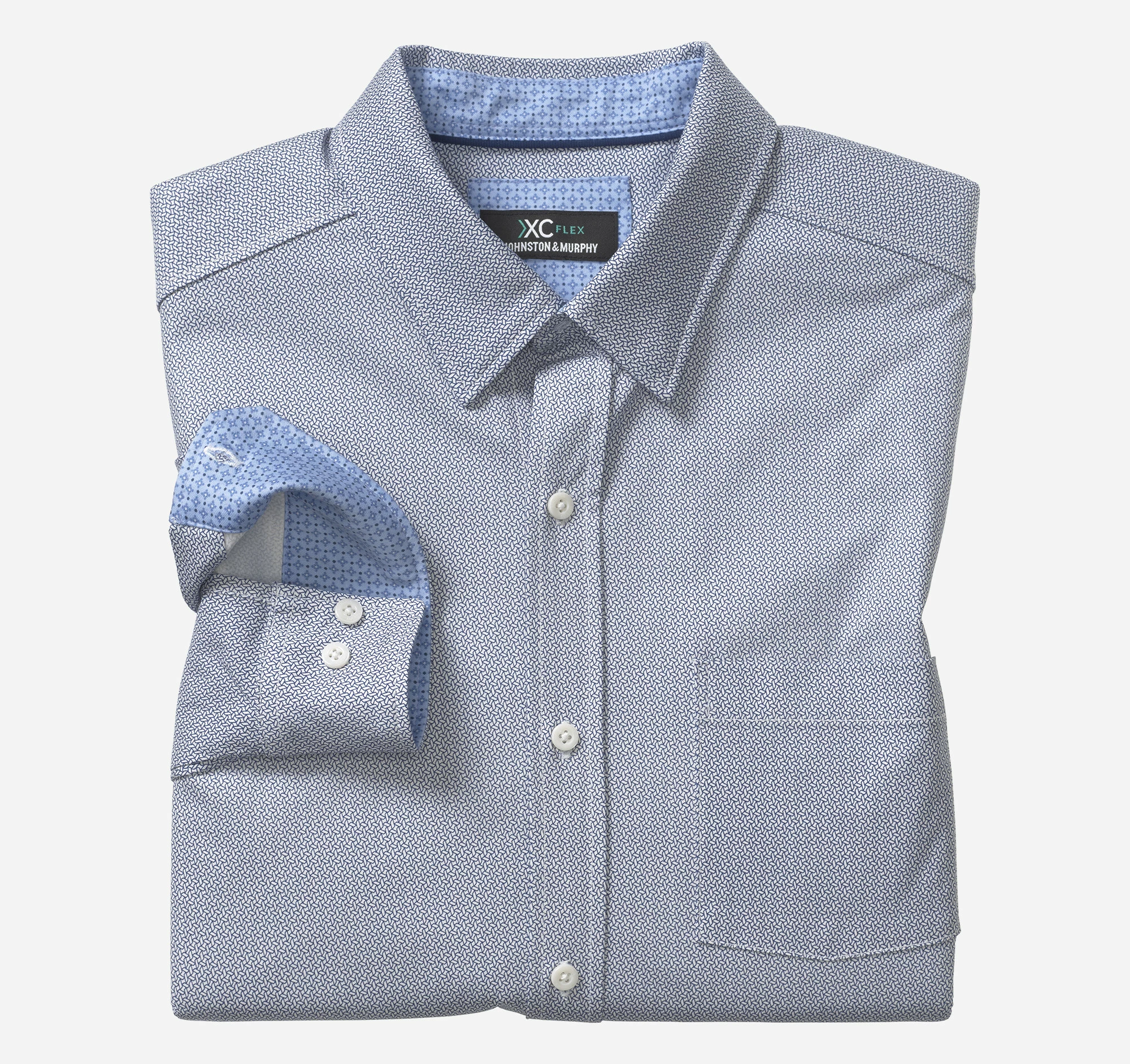 - The look of a woven dress shirt in soft cotton or cotton-blend knit offers exceptional versatility and comfort.