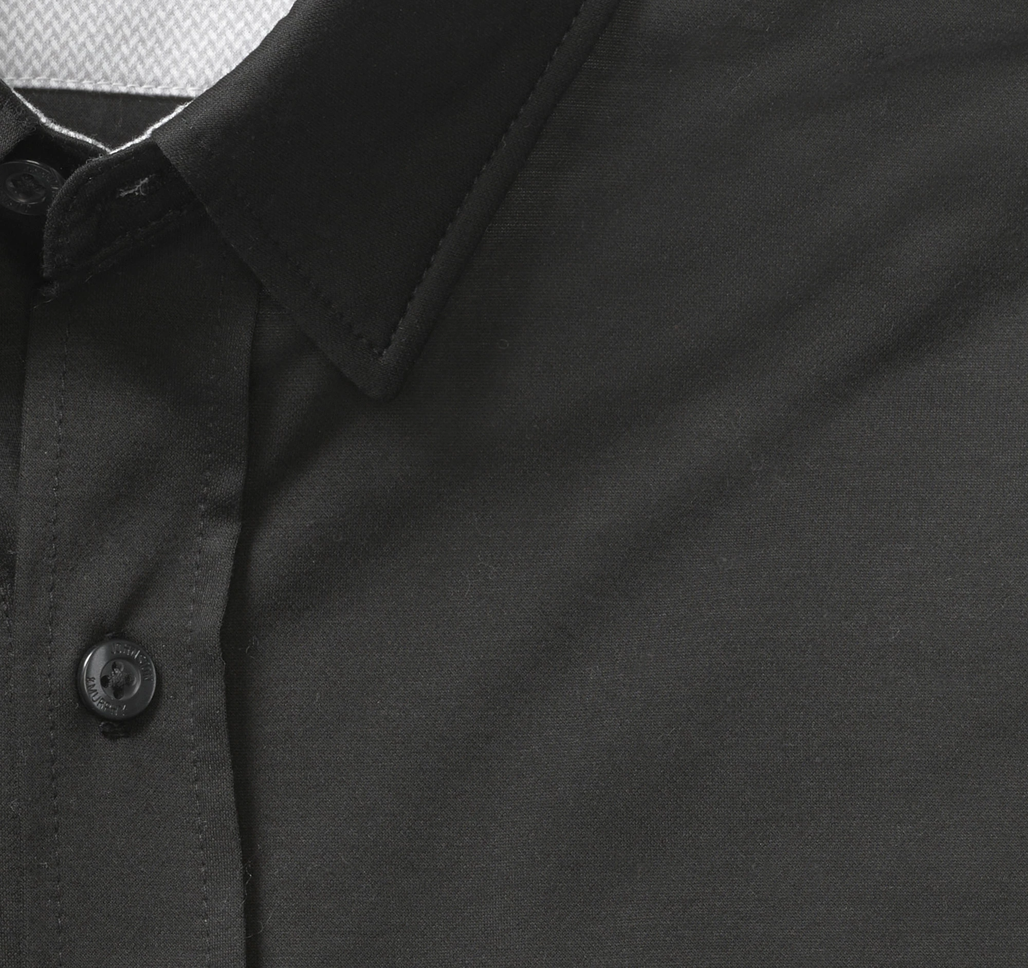 - Four-way stretch fabric is moisture-wicking and wrinkle-resistant.