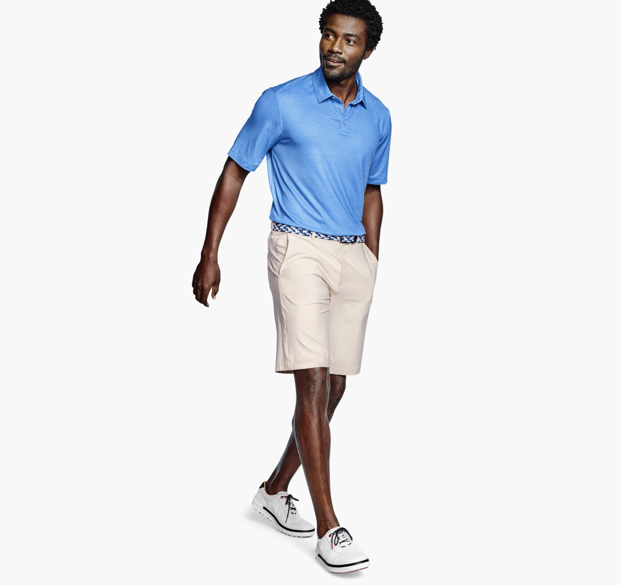 - Moisture-wicking, quick-drying stretch knit feels soft, resists wrinkles.