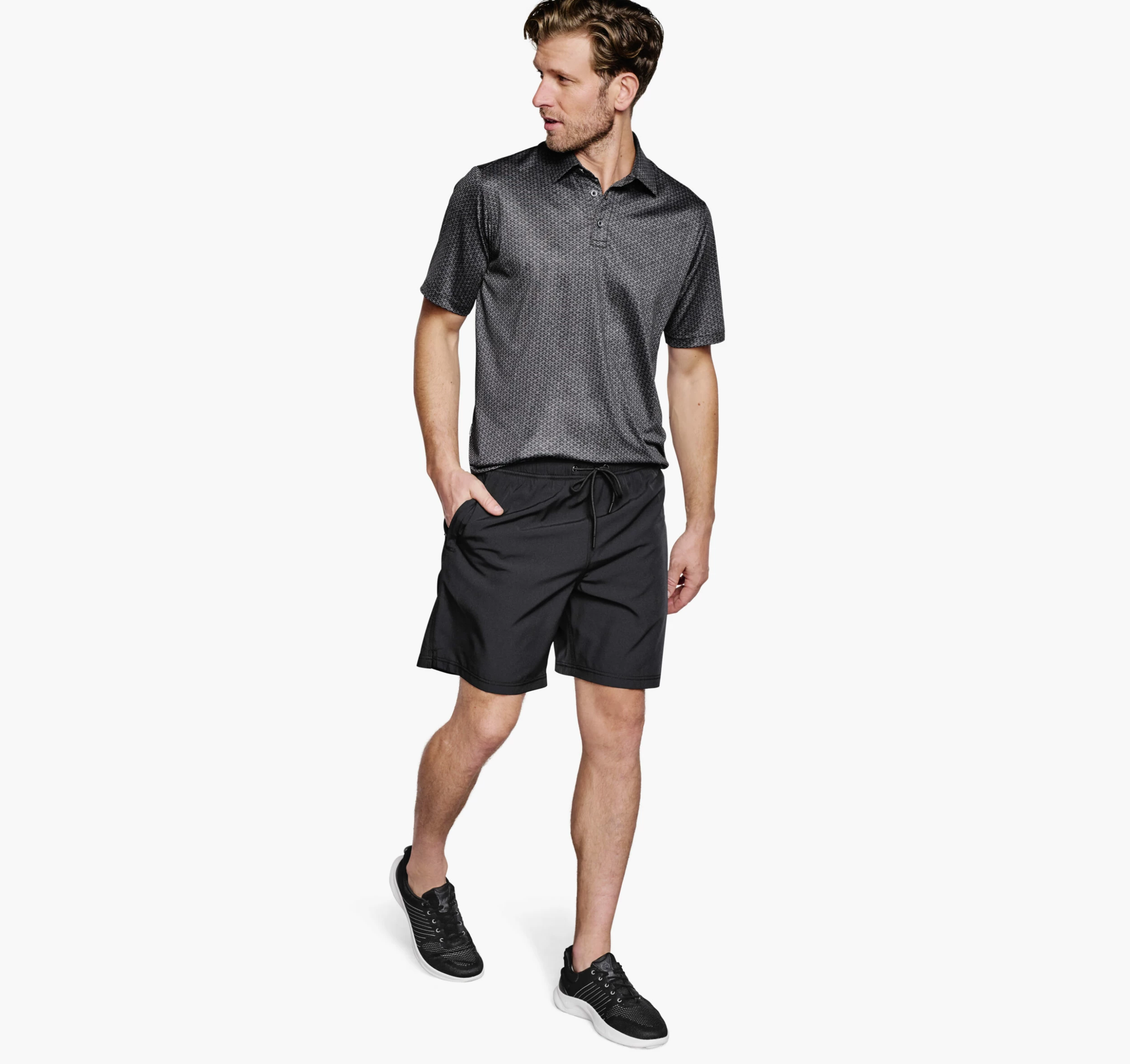 - Moisture-wicking, quick-drying stretch knit feels soft, resists wrinkles.